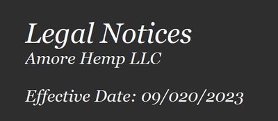 The following sections address specific legal requirements not addressed within our Privacy Policy, Return Policy, or Terms of Service. These statements, notices, and disclosures are in addition to, and do not replace, those other legal documents. Amore Hemp LLC. (“us”, “we”, or “our”) operates the www.Amorehemp.store website (the “Product” or “Products”).